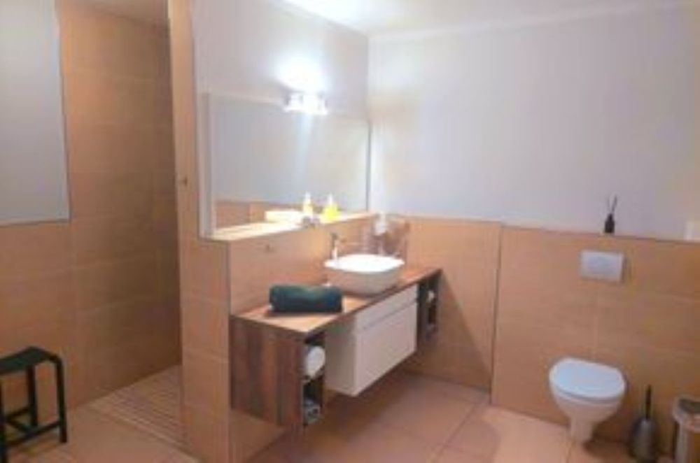 Die ca. 72m² Komfort Ferienwohnung verfügt über zwei Schlafzimmer, Wohnbereich mit Küchenzeile, begehbare XL Dusche/WC sowie eine große private Terrasse.
